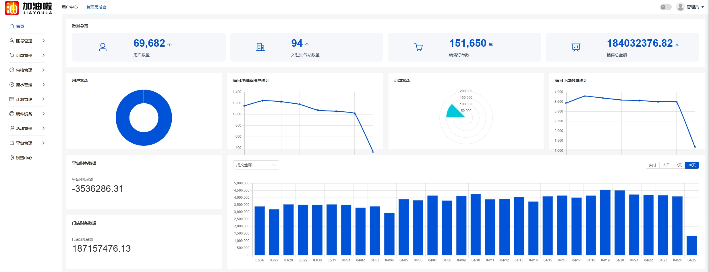 加油啦支付分流分账管理系统是一个场景定制化解决方案,按商户需求,订单分账,余额分账,金额分账,区间分账等。